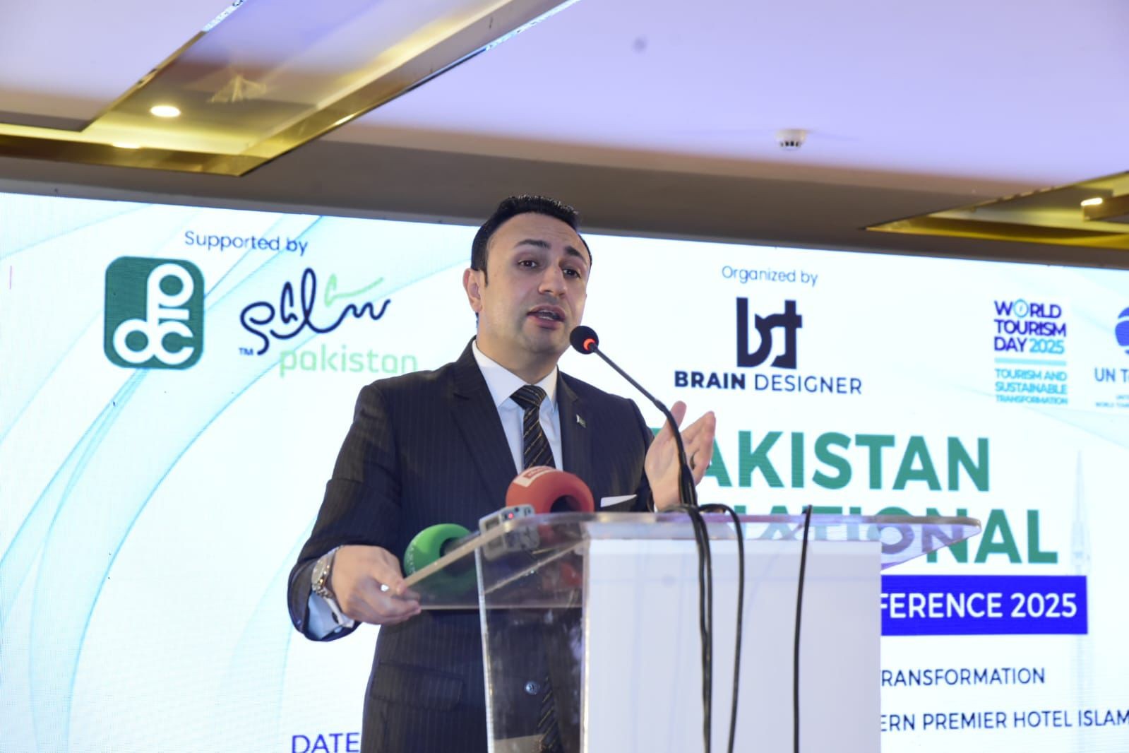 Pakistan celebrated World Tourism Day 2025 in Islamabad with the successful hosting of the 3rd Pakistan International Tourism Investment Conference, organized by PTDC in collaboration with Brain Design and Best Western Premier Hotel. The conference, themed “Tourism and Sustainable Transformation”, provided a platform for leaders, policymakers, diplomats, investors, and tourism stakeholders to discuss sustainable tourism growth, investment opportunities, and community-based tourism models. Opening remarks were delivered by Mr. Muhammad Rauf Raja, CEO Brain Design, emphasizing the importance of public-private partnerships in driving tourism-led economic development. Chief Guest Mr. Sardar Yasir Ilyas Khan, National Coordinator to the Prime Minister on Tourism, reaffirmed the government’s vision to position Pakistan as a top global tourism destination. MD PTDC Mr. Aftab ur Rehman Rana delivered a keynote highlighting Pakistan’s sustainable tourism strategy, investment-friendly policies, and initiatives for promoting eco-tourism and heritage tourism. Dr. Muhammad Ali Malik, Deputy Secretary PM’s Youth Programme, presented insights on youth-driven eco-tourism and community engagement. A high-level panel discussion on “The Role of Technology in Environmental Sustainability” brought together experts from the World Bank, FWO, BOI-GB, Lakeshore Resorts, and NLC Aviation, offering actionable strategies for integrating technology into sustainable tourism practices. The Embassy of Indonesia added cultural vibrancy with a traditional musical and dance performance, reinforcing Pakistan’s international tourism collaborations. The event concluded with a shield distribution ceremony, cake cutting, and a group photo, symbolizing a shared commitment to sustainable growth, investment promotion, and the advancement of Pakistan’s tourism sector. The conference underscored Pakistan’s dedication to positioning itself as an environmentally sustainable, culturally rich, and globally competitive tourism hub.